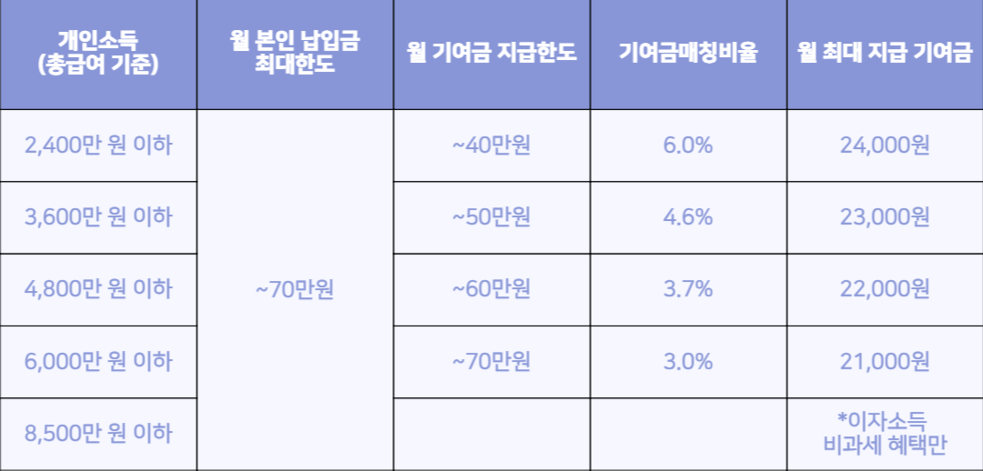 개인별 소득에 따라 기여금 지급한도가 상이합니다.
